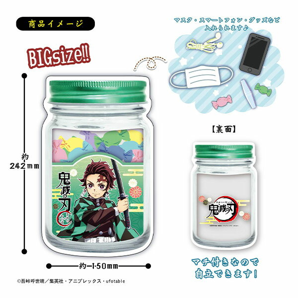 日本中にどよめきと旋風を巻き起こした話題の映画、『鬼滅の刃』の雑貨シリーズ登場!自立OK!まるでビンの中に入っているように見えるデザインのかわいいジッパーバッグです。